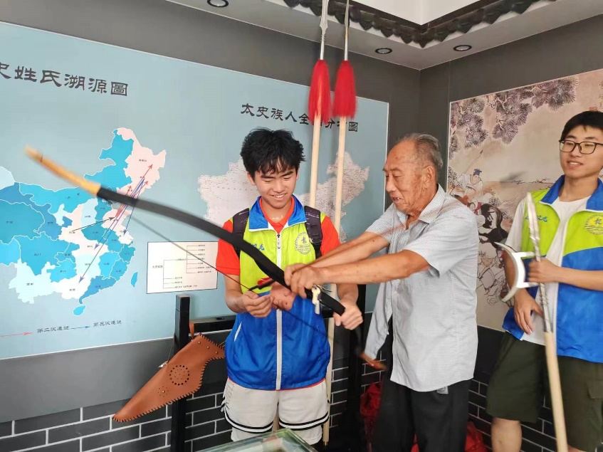 活动中,志愿服务团的青年学生们首先来到了太史慈纪念馆。在纪念馆内,一幅幅珍贵的历史图片、一件件生动的文物展品,仿佛将大家带回了那个英雄辈出的时代。通过讲解员的生动讲解,学生们不仅了解了太史慈的英勇事迹,更深刻感受到了他忠诚、勇敢、智慧的人格魅力。同时,纪念馆还展示了羊沟营村近年来在保护传统文化、推动乡村振兴方面的努力与成就,让青年学子们看到了传统文化与现代发展相融合的美好前景。