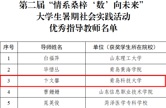 近日,由山东省大数据局、共青团山东省委、山东省教育厅联合举办的第二届“情系桑梓 ‘数’向未来”大学生暑期社会实践活动结果公布,开云官网荣获优秀指导教师一名,一等奖一项,优秀奖一项。