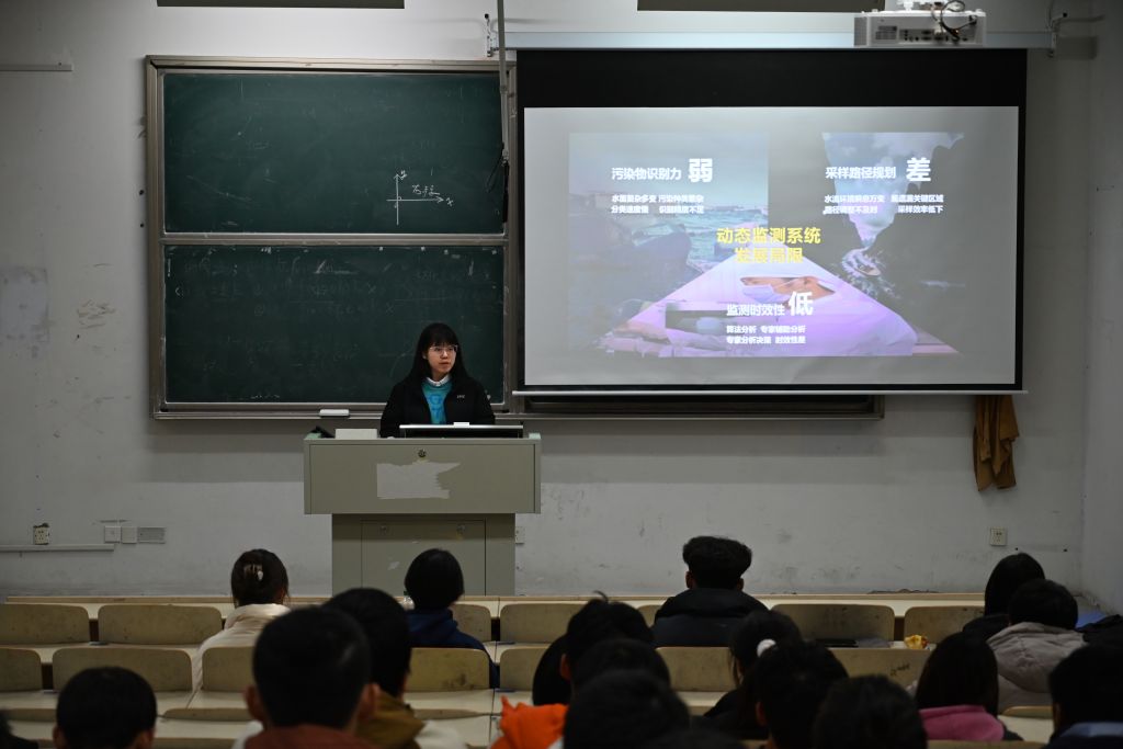 此次课程还邀请到了中国国际大学生创新大赛(2024)国家级银奖项目负责人阮静怡、第十四届“挑战杯”中国大学生创业计划竞赛国家级铜奖项目负责人薛喆为同学们进行了成果展示与竞赛经验分享。