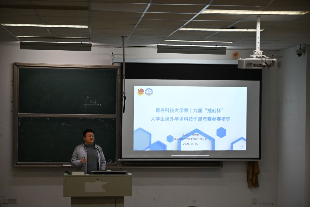 杨奉儒向同学们阐述了参加科技创新竞赛对大学生成长的重要性,围绕如何寻找科研方向,包括关注热点问题、调研社会需求、观察日常生活、挖掘研究空白等方面,为同学们进行了详细的解读与阐释,帮助同学们更好地理解科技创新竞赛的内涵与意义。