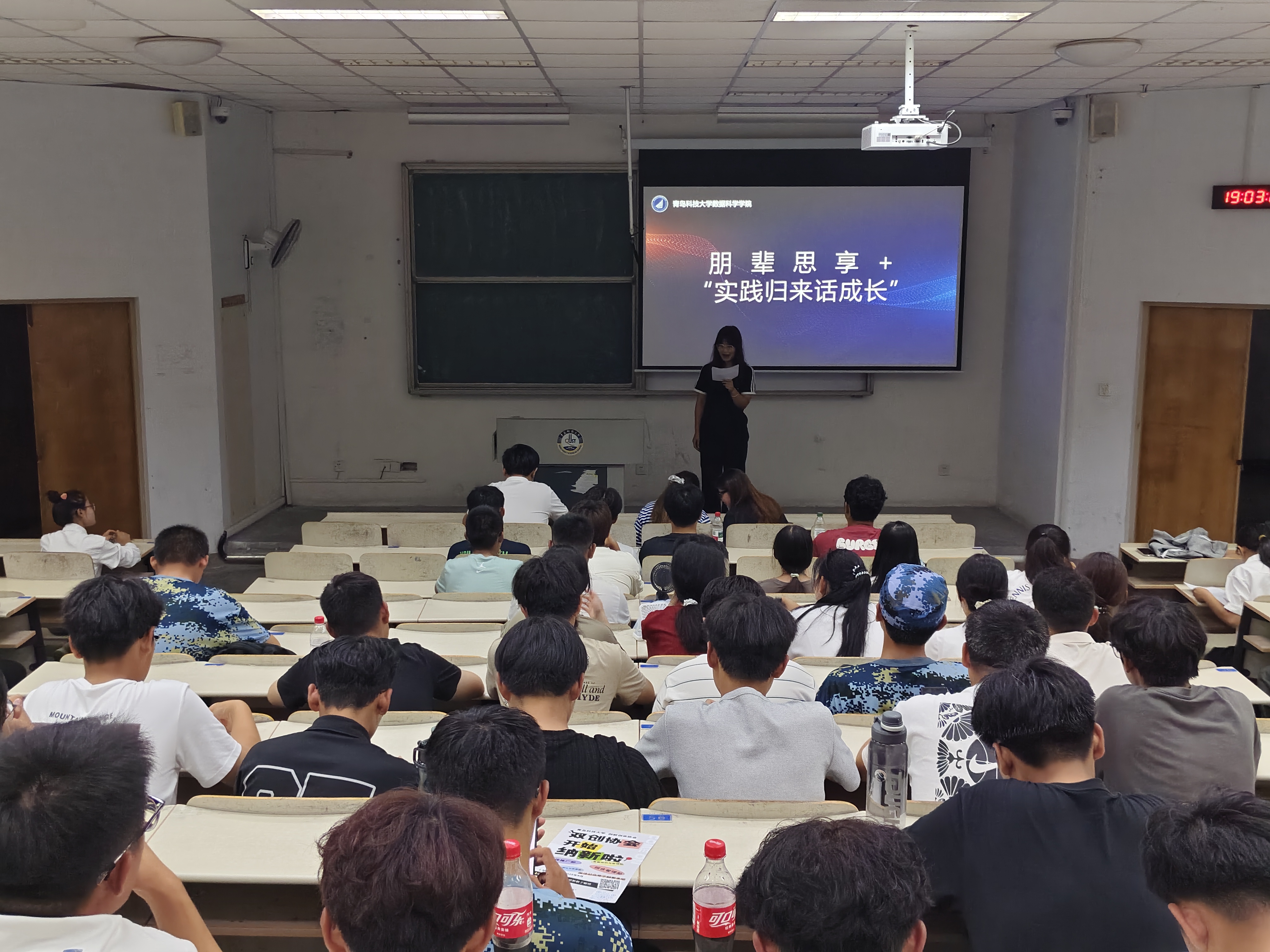 人工智能232班团支书杨林澍则基于自身实践经验,系统梳理并介绍了大学生社会实践的主要流程,围绕“筹备、开展、总结”等关键环节,为新生提供了清晰的指导,帮助大家初步建立起对社会实践的系统认识。