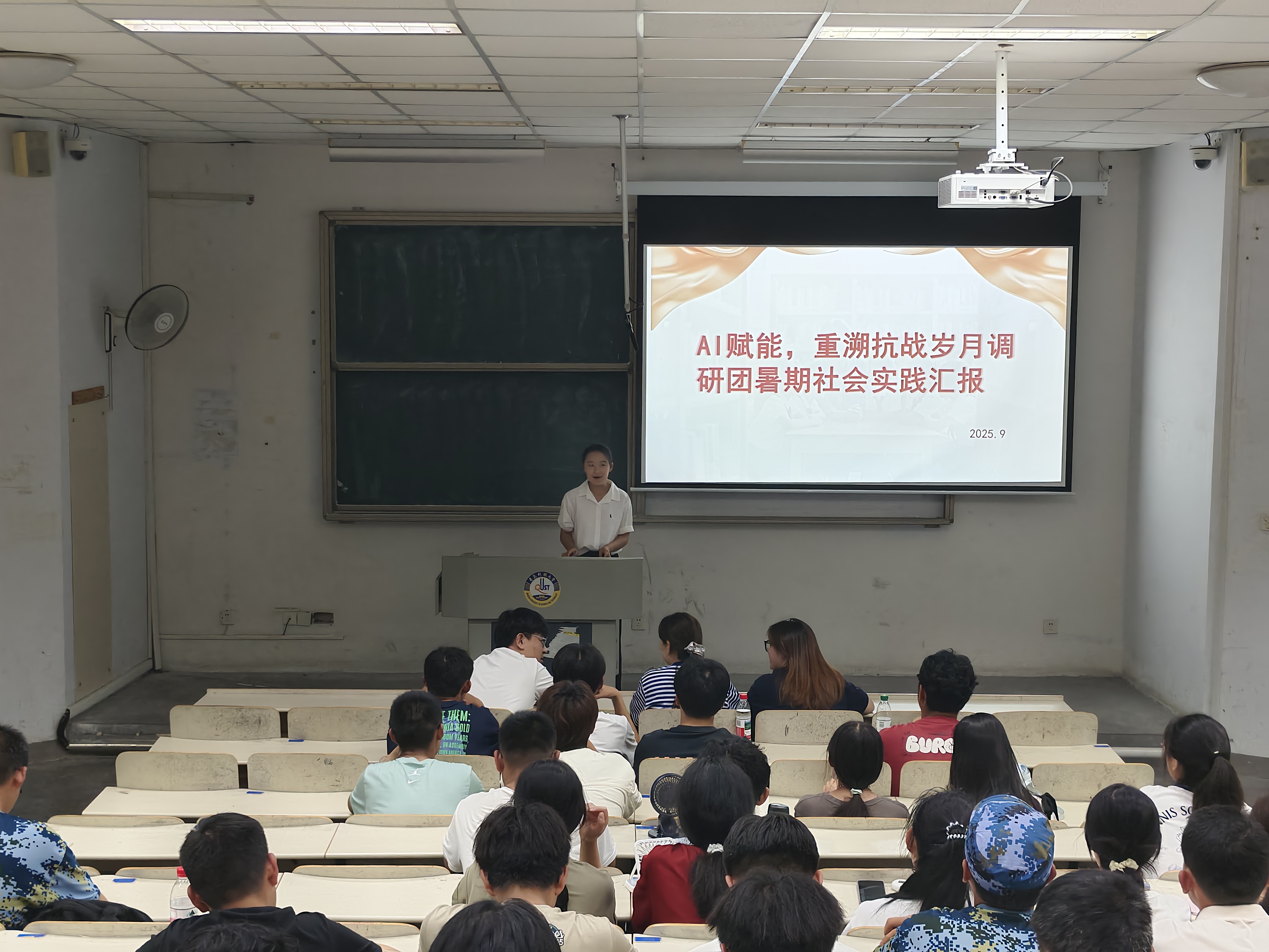 首先,各实践团队代表对实践成果进行汇报展示。2025年暑期,kaiyun开云官方共有22支队伍参与“三下乡”社会实践,积极开展各类实践活动。其中,“AI赋能,重溯抗战岁月”实践团赴青岛市平度市开展红色实践活动,依托学科特色与专业优势,为老照片开展“焕彩”修复工作,感悟伟大抗战精神的时代价值;“春雨有爱,点亮未来”实践团赴春之雨如康家园开展弱势群体关爱帮扶活动,通过共同完成扭扭棒、钻石画等手工作品,弘扬自强与助残精神,增强青年社会责任感;“绿益分类·智绘家园”实践团赴青岛市崂山区开展绿色环保科普活动,提升居民的垃圾分类意识与环境保护意识。