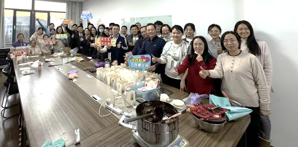 在学院教师高颖的指导下,老师及学院子弟现场制作玛格丽特饼干和坚果巧克力。现场欢声笑语不断,其乐融融。在亲手制作饼干、巧克力的过程中,教职工们不仅体验到了烘焙的乐趣,更在默契配合中加深了彼此的情感纽带。