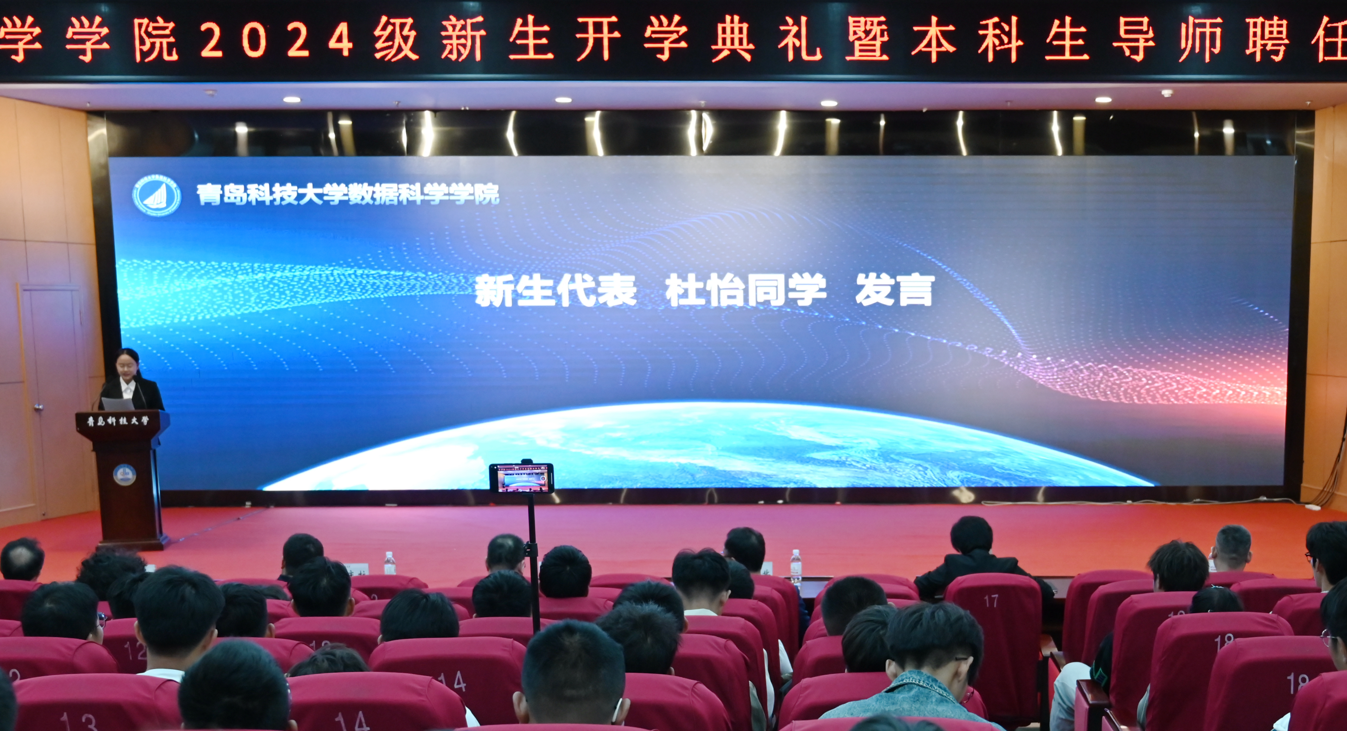 新生代表、人工智能242班杜怡发言,她用“天高海阔万里长,华夏少年意气扬”激励同学们,希望大家在风华正茂的年纪书写青春的新篇章,拥抱机遇,迎接挑战,以坚韧不拔的意志乘风破浪,以心系天下的情怀让青春远航。