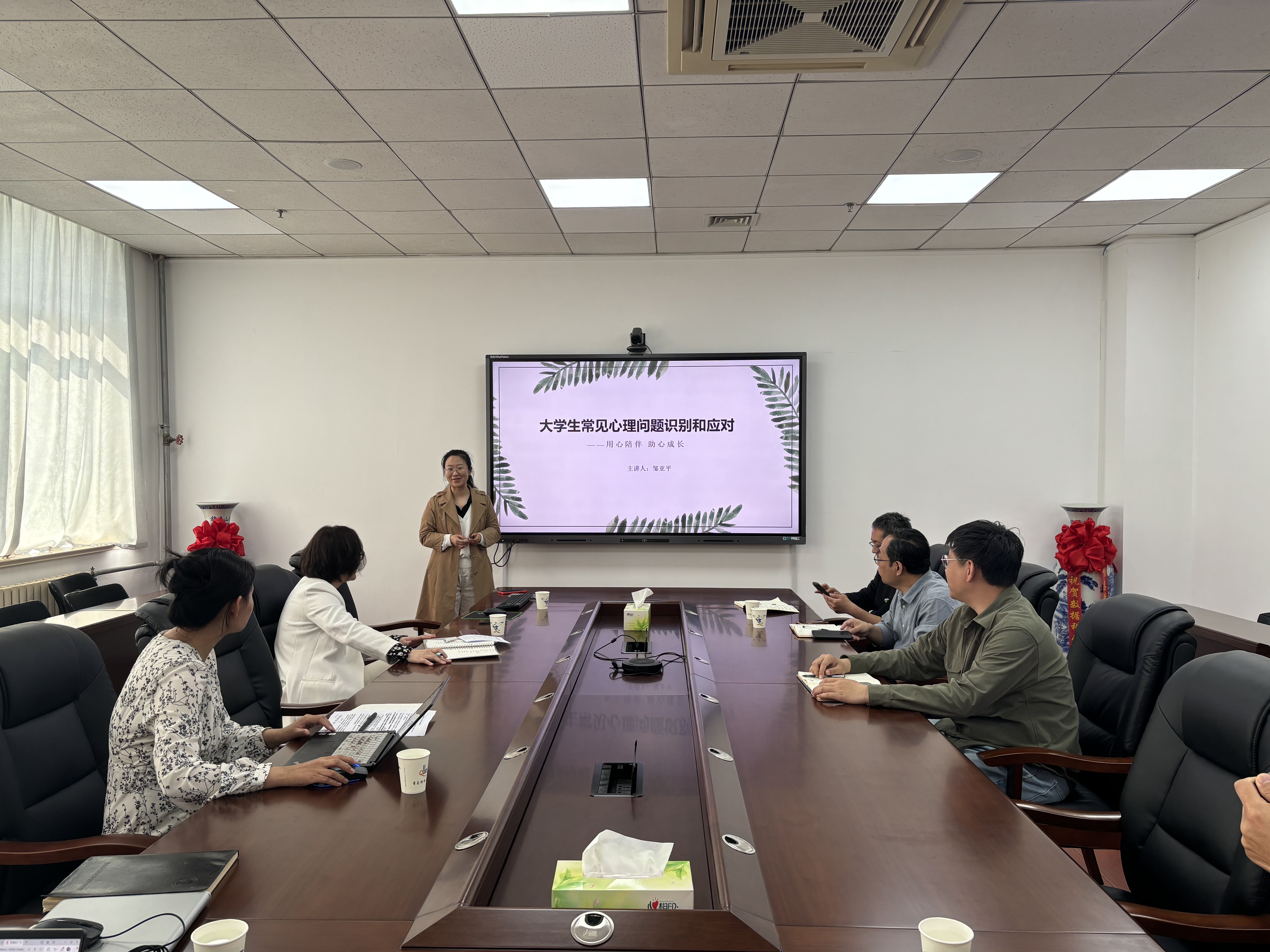本次会议邀请到了学校心理咨询中心的邹亚平老师进行《常见的心理问题识别和干预》专题培训。邹亚平老师从心理危机产生、心理危机识别、心理危机干预进行了介绍,通过生动的案例,结合自身的工作经验,为班主任们分享帮扶措施。