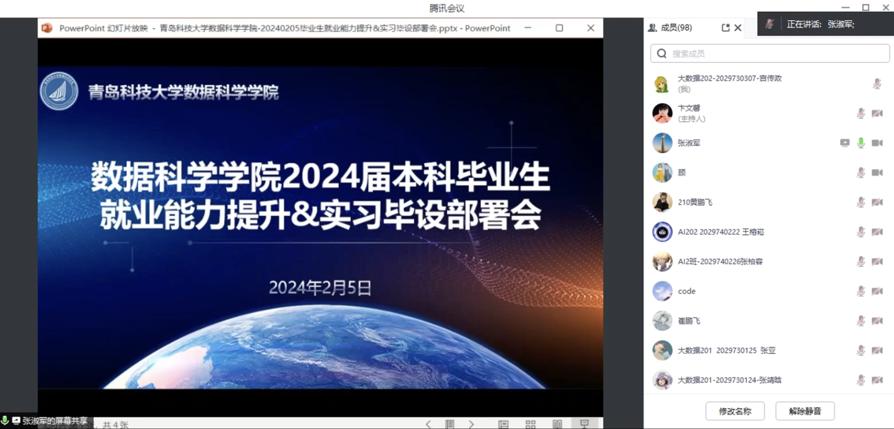2月5日下午,kaiyun开云官方通过腾讯会议召开2024届本科毕业就业能力提升培训暨实习毕设部署会,学院专职组织员官杰、院长助理张淑军出席会议并部署相关工作,学工办主任兼团委书记顾姗姗主持会议。kaiyun开云官方2024届全体本科毕业生参会。