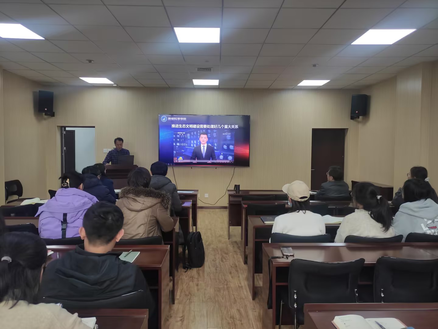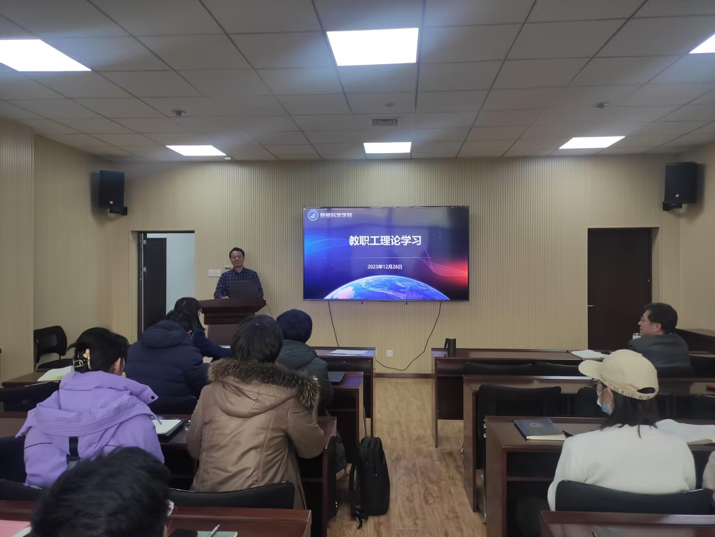 会上,全体教职工进行了政治理论学习。