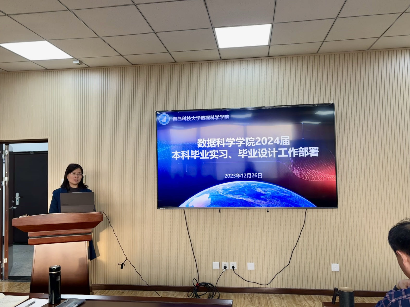 院长助理张淑军部署2024版本科专业人才培养方案修订调研工作、2024届本科毕业实习、毕业设计工作。她指出,各位老师要合理分工,群策群力,充分广泛开展调研,力求保证2024版本科人才培养方案的科学性、先进性、合理性,并为2024年春季学期毕业设计工作的正常进行奠定良好的基础。