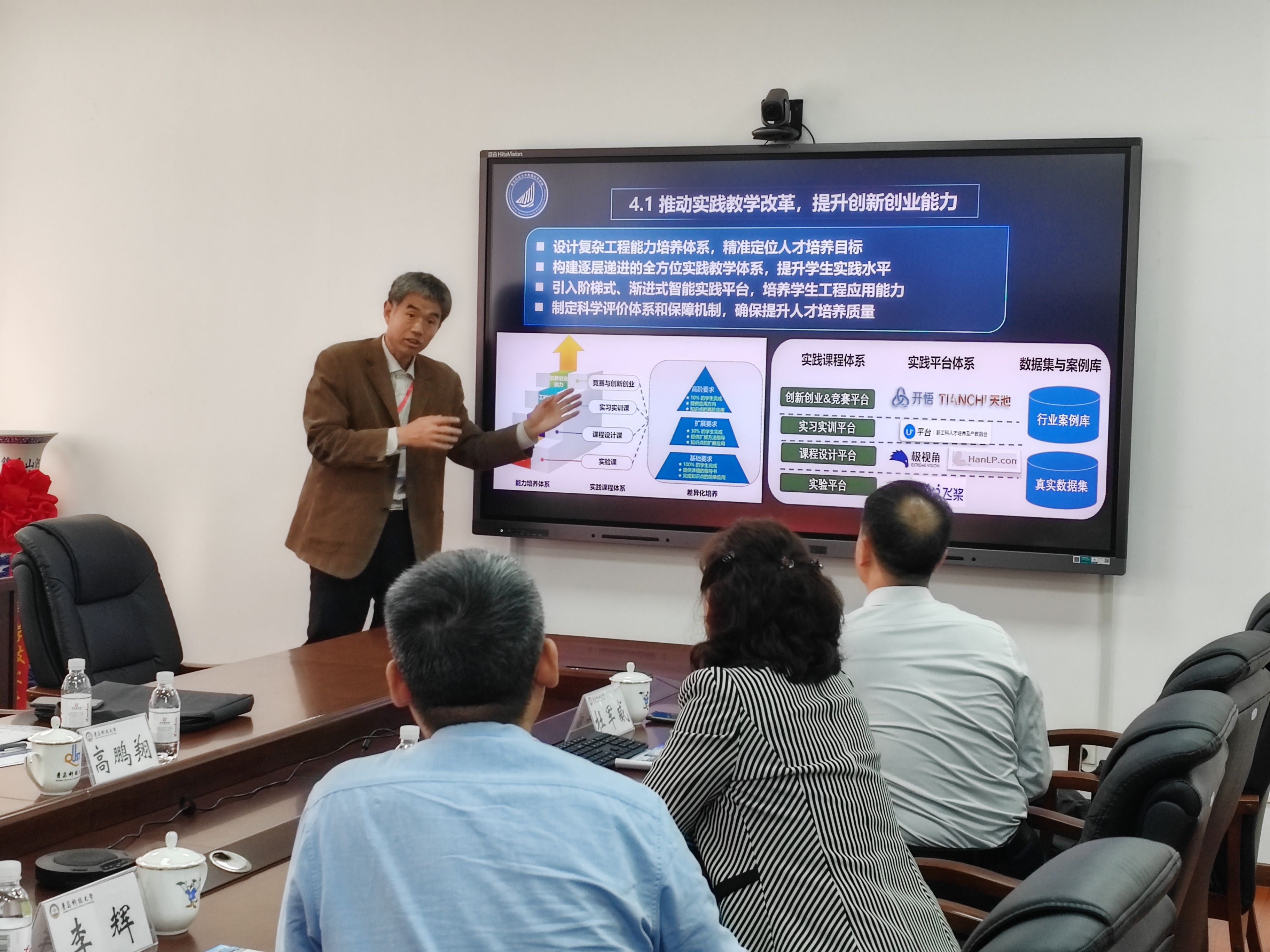 评估专家听取了杜军威副院长的学院工作汇报,全面了解了学院概况 、 人才培养 、 师资队伍 、 举措与成效 、 特色项目等各方面的情况, 高鹏翔教授对于学院在不到半年的时间建成一个独立运转的实体学院感到震惊,对于学院在迎接教育教学审核评估的各项的工作给予了充分肯定, 特别提出了学院推进的卓越工程师计划为更好的培养学生提供了平台,显示出学院贯彻学生中心的人才培养指导思想。高教授在进一步建立完善学生的评价体系,重点推动学院实践教学改革、提升创新创业能力培养水平等方面给予了具体的指导。最后,肯定了学院在管理方面的有关做法,指出kaiyun开云官方一定是一个积极向上的、一个团结的、一个有生气的团队,kaiyun开云官方未来可期。